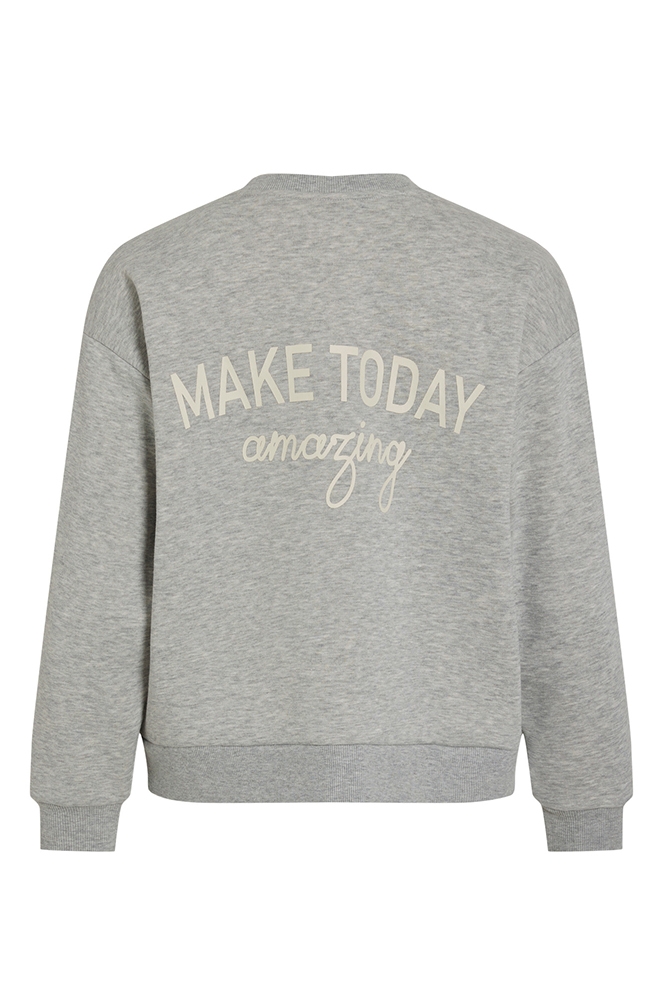 Bomber Vimarin de Vila en color gris con mensaje MAKE TODAY AMAZING en beige.