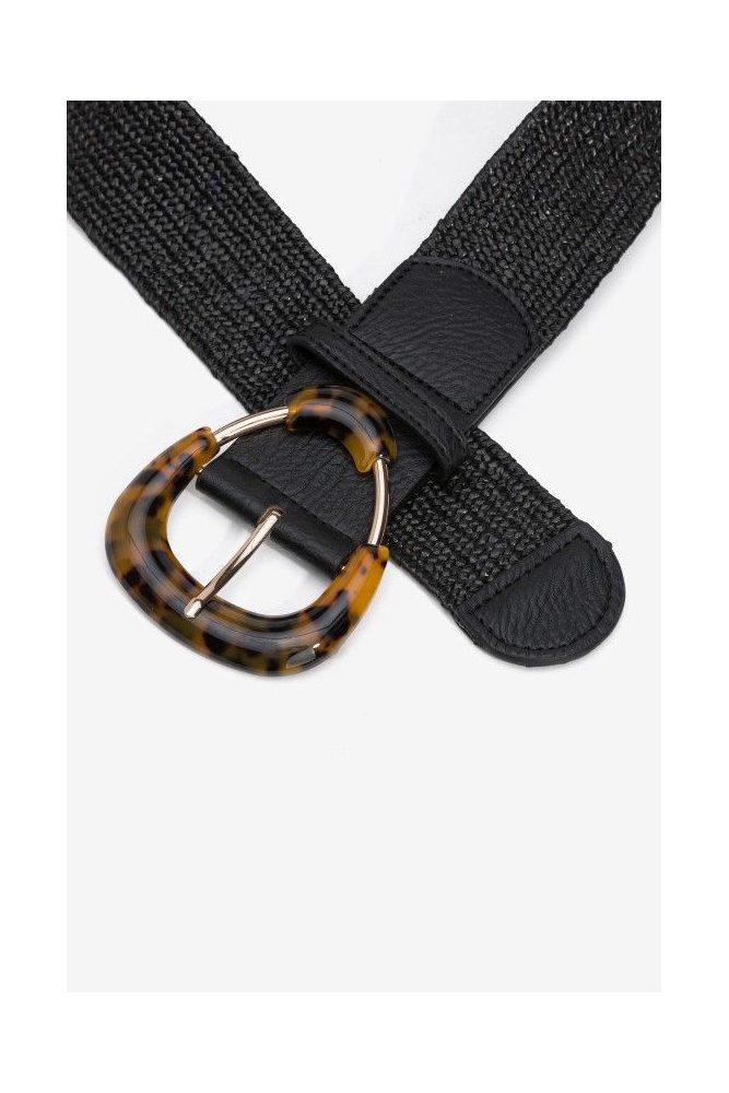 Cinto rafia negra elástica carey de la marca Vilanova.