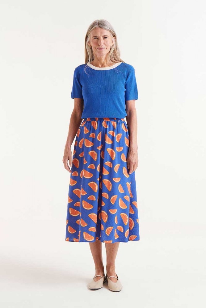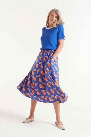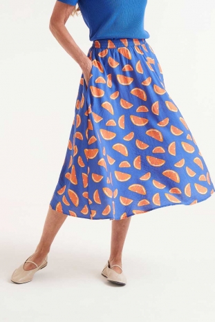 FALDA MIDI AZUL POMELOS NARANJAS COMPAÑÍA FANTÁSTICA
