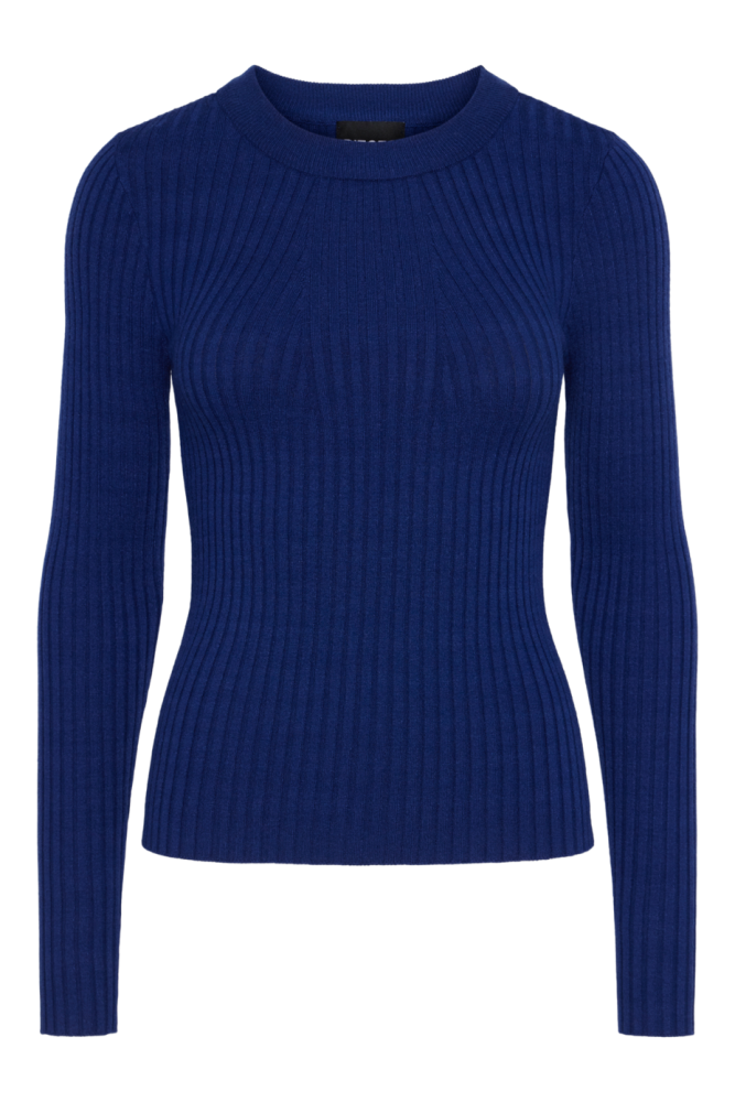 Top Crista de manga larga en canalé de color azul tinta de la marca Pieces.