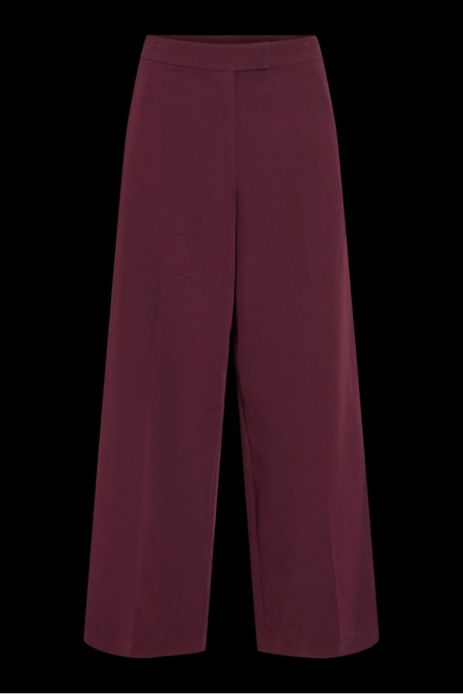 Largo. Pernera ancha. Tiro medio alto. Cierre frontal con corchete, botón interno y cremallera. Bolsillos laterales.