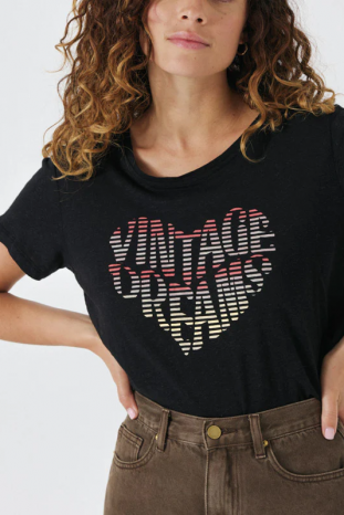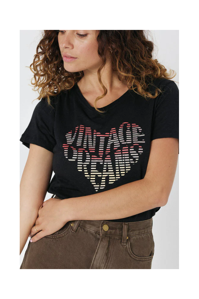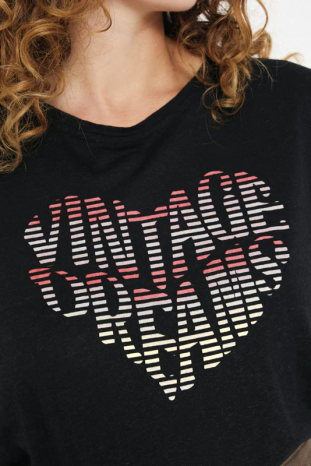 Camiseta manga corta Britany en color negro con mensaje VINTAGE DREAM de la marca Artlove.