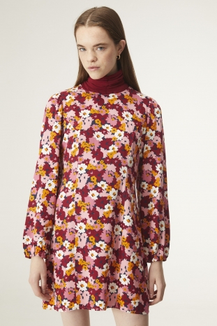 Vestido Floral Vintage de Compañía Fantástica. Estampado de flores en tono granate, rosa, mostaza y crudo.