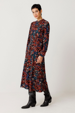 Vestido Kamila Gots Garden de SKFK. Negro con azul y teja.
